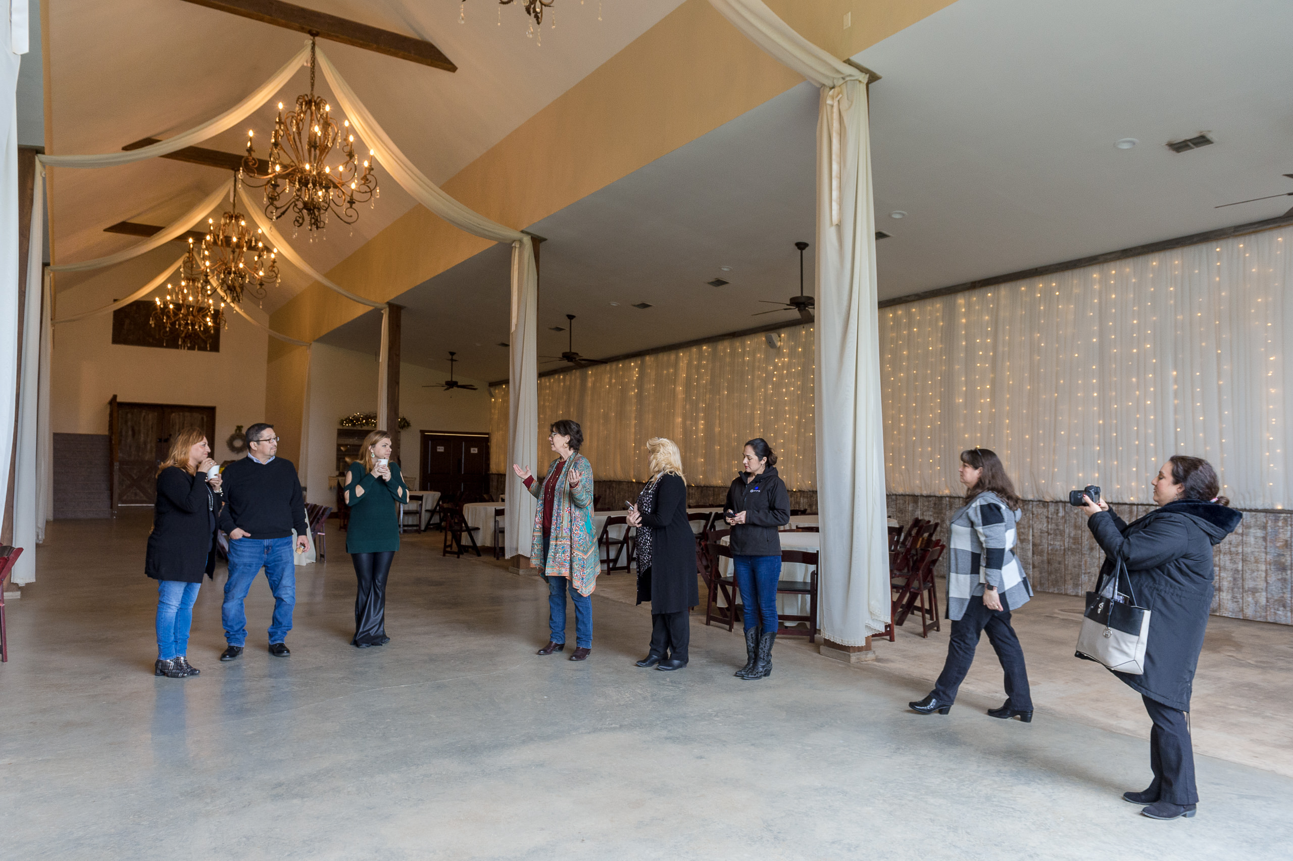 This is me (pictured far left) with a group of other San Antonio wedding professionals visiting the CW Hill Country Ranch back when there was no coronavirus in these parts yet in February. Kristine is pictured front and center and is the tallest person in the entire group.